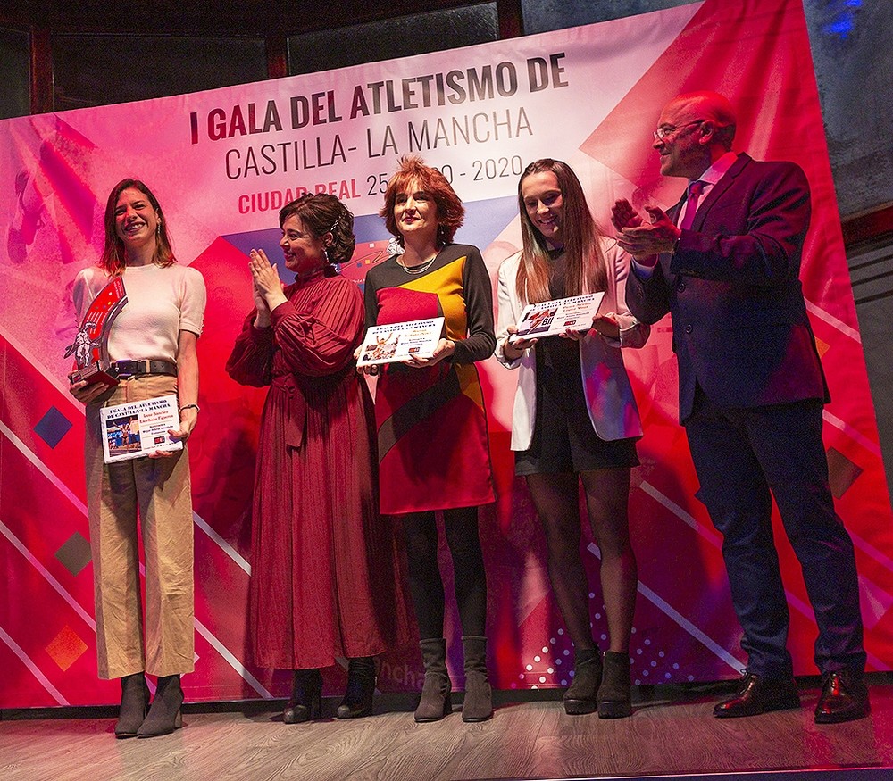 | Irene a la izquierda y a la derecha del presidente de la Federación de CLM Olallo Fernández [Foto: Tomás Fernández de Moya] |